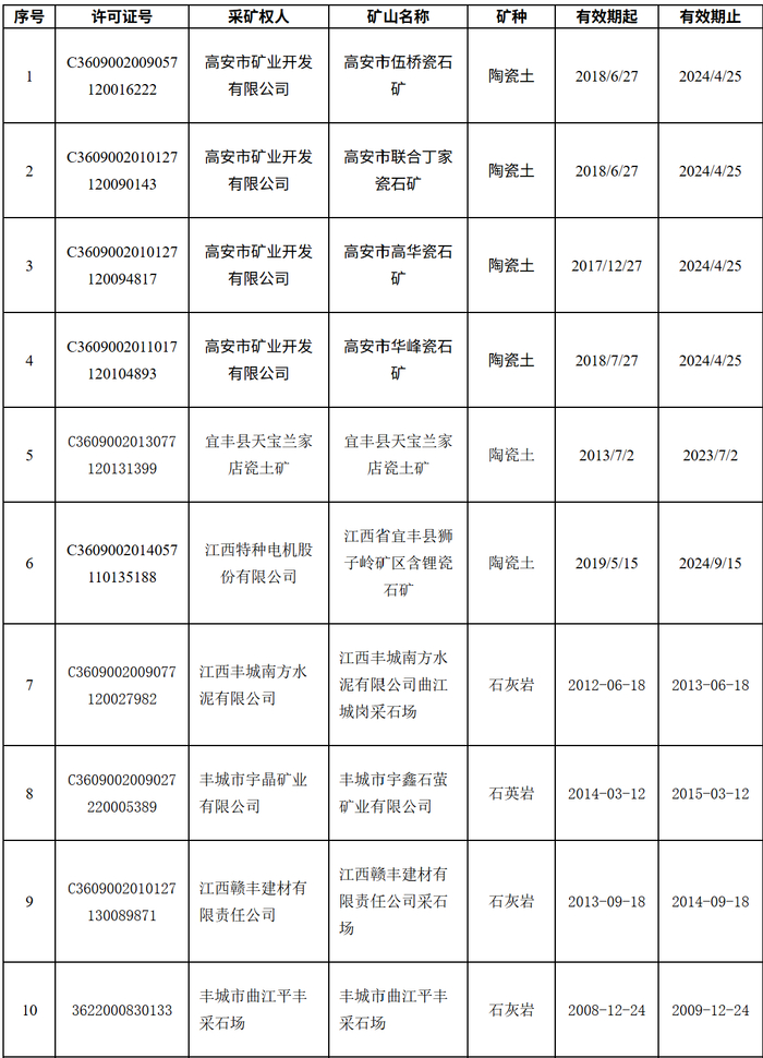 根据宜春市自然资源局此次发布的公示,该狮子岭矿区的采矿证于2024年9月15日到期。