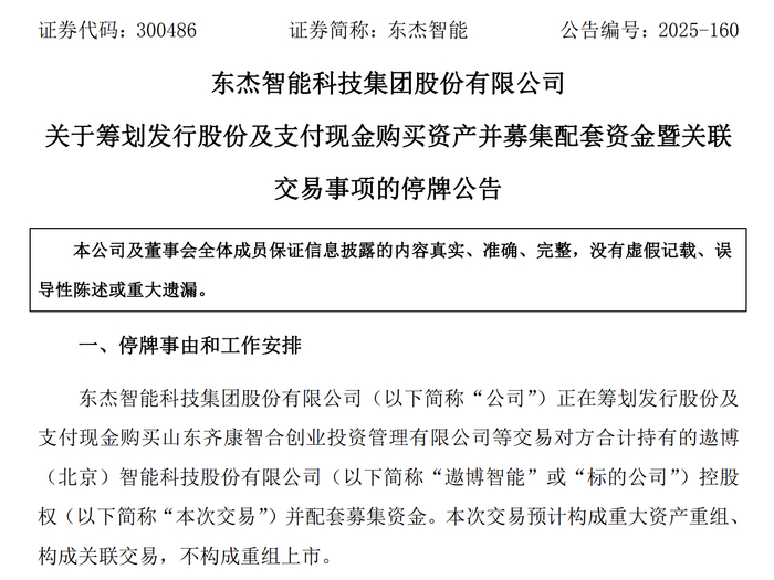 根据公告,东杰智能预计在不超过10个交易日内披露交易方案。若未能如期披露,公司股票最晚将于2025年12月31日复牌并终止筹划相关事项。公司表示,已与交易对方签署意向协议,最终交易价格将以具备证券期货相关业务资质的评估机构出具的评估报告为基础协商确定。