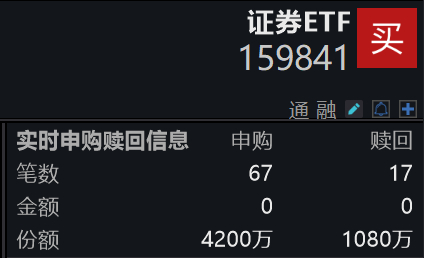值得一提的是,证券ETF(159841)获资金积极布局,申购份额已达3120万份。