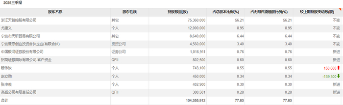 截至2025年9月30日,天普股份股东户数9621户,较去年6月30日的6380户增超50%。