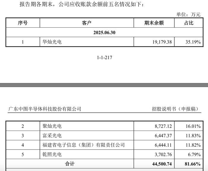 来源:说明书其中,2025年上半年,中图科技对第一大供应商云南蓝晶的采购金额占比达39.9%,对第一大客户华灿光电(300323.SZ)的销售金额占比达到27.18%。