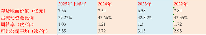 也正因为退役半导体设备的积压,相关业务的收入确认周期较长,拉低了整体存货周转率。数据显示,公司2022年至2025年上半年的存货周转率较同行偏低,且处于下降通道:1.72次/年、1.3次/年、1.21次/年、1.03次/年(2025年上半年已折算全年)。