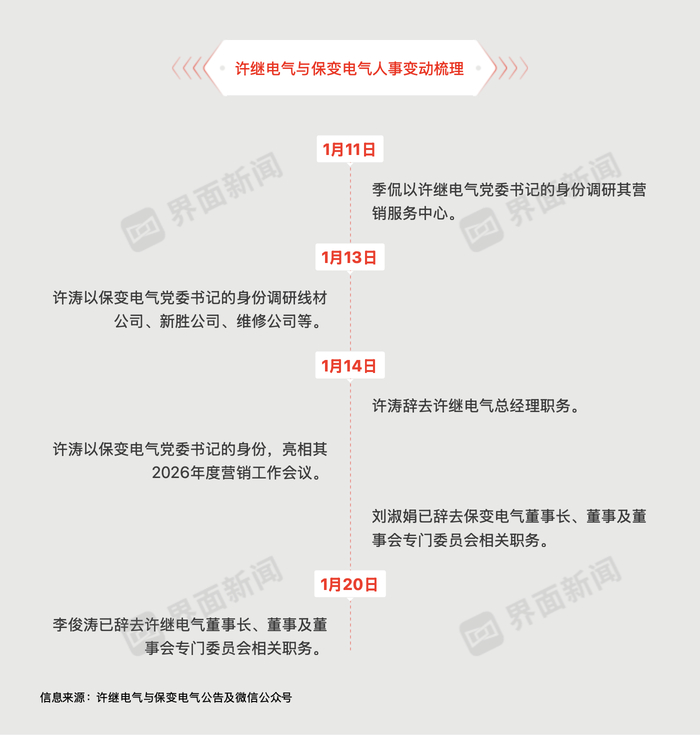 1月20日,许继电气(000400.SZ)发布公告称,其董事长李俊涛因工作调动,近日申请辞去公司董事长、董事及董事会专门委员会相关职务。其原定任期至公司第九届董事会届满之日止。辞职后,李俊涛将不再担任公司任何职务。