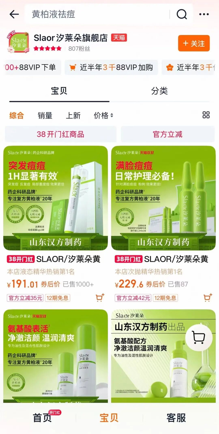 从产品逻辑来看,汐莱朵的核心竞争力源于母公司的中药技术积淀——依托复方黄柏液涂剂中的黄柏、金银花、连翘、蒲公英等中药抗炎组方,主打“无酸祛痘、屏障修护”的产品定位,刻意避开水杨酸、维A酸等传统祛痘成分的刺激路线,精准瞄准敏感痘肌、医美术后等细分人群。