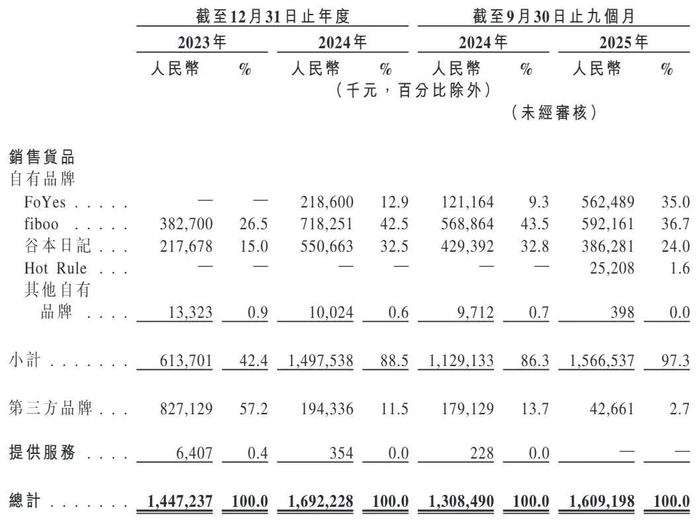 图源:《招股书》其中,fiboo是针对女性健康与营养而设的品牌,涵盖运动蛋白产品、功能性软糖及功能性饮品等多个系列。2023年、2024年及2025年前9个月(下称“各期”),fiboo品牌分别实现收入3.83亿元、7.18亿元和5.92亿元,在总收入中的占比分别为26.5%、42.5%和36.7%,是公司收入和占比最高的品牌。
