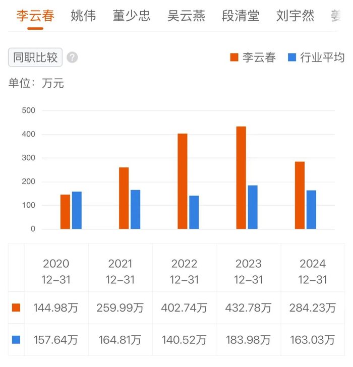 另外,随着不断下滑的业绩,沃森生物的管理层薪酬也有所下调。根据财报,公司董事长李云春2024年薪酬为284万元,较上年同期的432万元略有下滑,但依旧远高于行业平均的163万元。