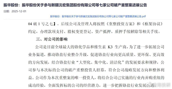 振华走的则是另一条路。自2016年上市以来,始终坚持纵向一体化+绿色制造,上游布局18万吨铬矿分选能力,中游不断优化工艺,下游拓展维生素K3、金属铬、超细氢氧化铝等高附加值产品,形成闭环生态。