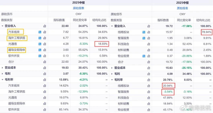其实永鼎光通信业务毛利率19.07%,和行业平均差不多,并不算拉胯。但整体毛利率被压到13.86%,主要是汽车线束和超导材料这些新业务还在烧钱阶段,原材料贵、人工高,营收虽大幅增长,但短期拖累了盈利表现;此外,孟加拉电网项目因合同临时调整,导致海外工程板块毛利率出现阶段性承压。