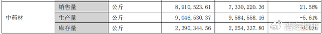 #ST香雪(300147)的中药材业务一直是其主要业务支柱之一,2024年录得营业收入9.36亿元(同比+25.69%),今年上半年来自中药材业务的收入为5.3亿元,同比继续增长19.02%。香雪制药的中药材业务包括种植、贸易和炮制饮片等环节,主要装在子公司亳州沪谯药业里,也在宁夏等道地产区建立了生产基地。从2024年中药材的业务数据可以看到,其实整体产量甚至有所下滑,不过因为市场价格景气大幅加大销售量所以收入同比增长较快。
