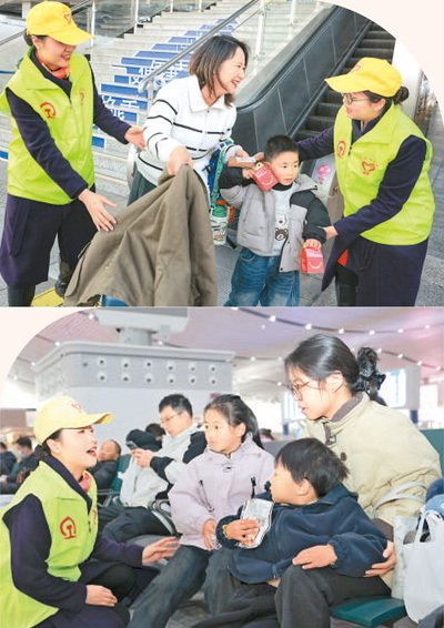 客运车间党总支副书记王琳娜正引导轮椅旅客进站,她介绍:“春运期间每天重点旅客达七八百人,我们一对一接送,保障特殊群体出行无忧。”不远处,外卖小哥王启明一家收到工作人员送来的福字和小马玩偶,定格下了团圆前的幸福瞬间。