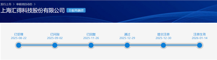 近日,上海汇得科技股份有限公司(以下简称“汇得科技”)2025年度向特定对象发行A股股票的申请已注册生效。