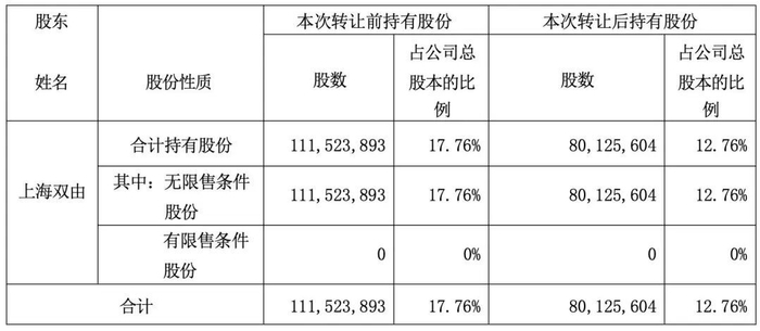 公司于2025年11月6日披露了《关于控股股东拟协议转让部分公司股份暨权益变动的提示性公告》,上海双由拟通过协议转让方式转让持有的3139.83万股股份,占公司总股本的5%。目前,上述协议转让尚未完成交割。