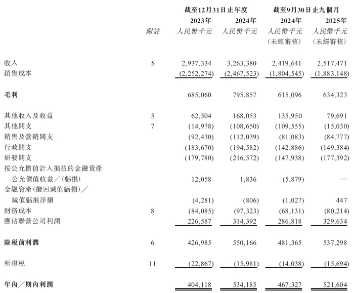 业绩方面,招股书显示,在过去的2023年、2024年和2025年前九个月,彤程新材的营业收入分别为人民币29.37亿、32.63亿和25.17亿元,相应的净利润分别为人民币4.04亿、5.34亿和5.22亿元。