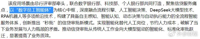 在科技赋能方面,重庆银行也走在了城商行前列,其自主研发的“重银晓AI”大模型平台和“数字员工智能体”已投入实战。