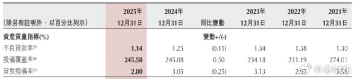 年报核心风控指标的“三降一升”态势,也为其万亿新征程卸下了包袱——不良贷款率降至1.14%,较上年末下降0.11个百分点;拨备覆盖率提升至245.58%,较上年末增加0.50个百分点。