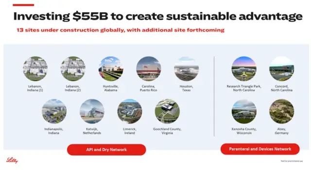 同时礼来近来正在用大手笔的产能投资来防止未来大概率的供应紧缺局面(高达550亿美元的制造业投资清单),新建产能预计在后续几年持续释放,这反而意味着短几年内:旗下GLP-1药物(涵盖口服药物)的供应紧张局面可能仍将持续。