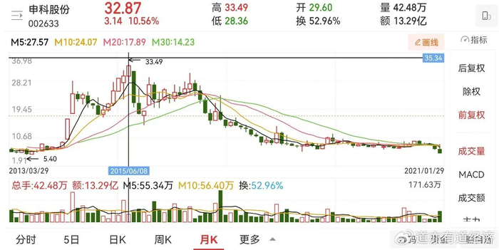何全波也曾尝试着改变申科股份的基本面,从2013年便多次筹划资产重组,游戏、影视、教育、信息这些题材都试了一遍,五次重组计划最后都流产了。但这些重组筹划并非全无用处,尽管一次次失败,申科股份的股价从10多块涨到了30多块。
