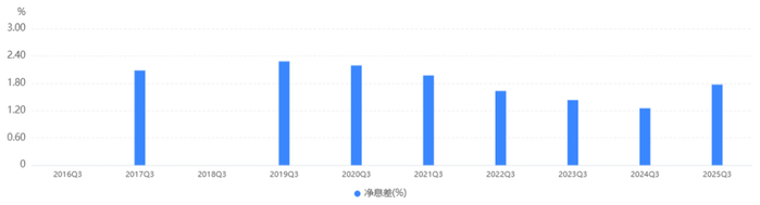 2025年前三季度,该行实现利息净收入63.10亿元,同比增幅达61.6%。其在总营收中的占比也从70.6%提升至82.1%,成为拉动增长的决定性力量。相比之下,非利息净收入有所回落,同比减少2.43亿元,占比收窄至17.9%。