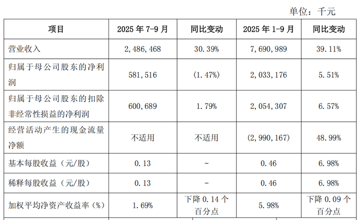 2025年前三季度,西安银行实现营业收入76.91亿元,同比增长39.11%,增速位列42家银行之首。