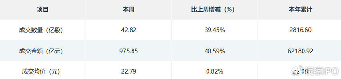 从成交量上来看,上周(12月8日-12月14日),北交所周成交量为42.82亿股,环比增长39.45%%;周成交金额为975.85亿元,环比上周增长40.59%。