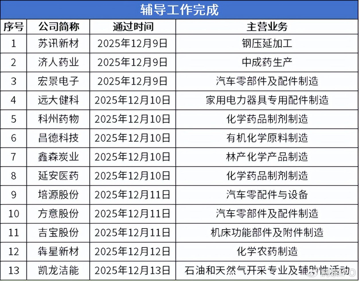 12月8日-12月14日,北交所有13家公司辅导工作完成。
