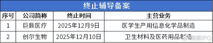 2025年12月10日,创尔生物与申万宏源承销保荐签署《终止辅导服务协议书》,广东证监局确认了本次终止辅导。