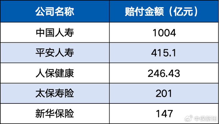 国寿理赔超千亿,中邮增幅超九成