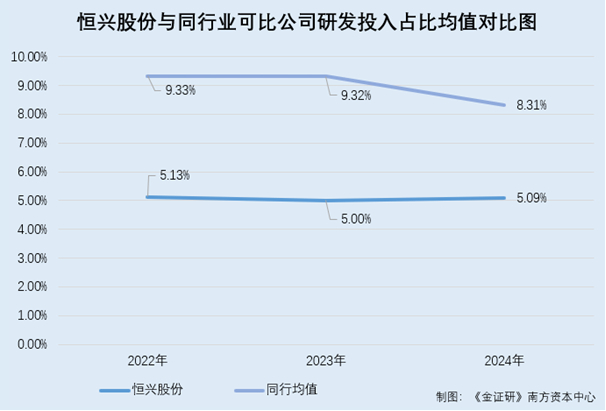 由上可知,恒兴股份在报告期内研发投入占比低于同行均值。