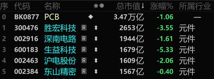 2月27日,在经历了前几天的连续大涨之后,PCB下游公司股价集体回调。胜宏科技下跌3.55%、深南电路下跌1.61%、生益科技下跌5.33%,沪电股份下跌2.06%。