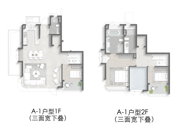 从灵动四房洋房,到魔术空间叠墅,再到私属领地联排合院——萃屿原墅以多元产品矩阵,为塔尖圈层定制匹配身份的生活容器。叠拼(建筑面积约152-160㎡):分为上叠与下叠,四层独立结构,各有天地。上叠(建面约147-152㎡)可独立入户,地3归家直达,更拥私享屋顶露台,静揽星空与清风;下叠(建面约157-160㎡)地库连通赠送地下室。