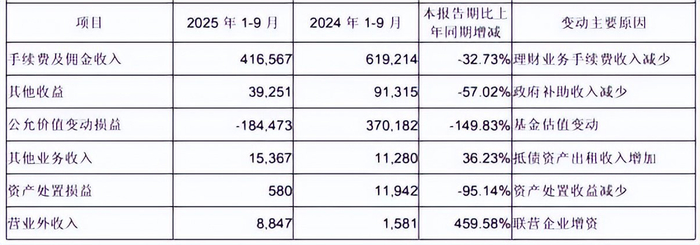 鳌头财经注意到,2025年前三季度,成都银行的非利息收入为30.36亿元,同比下滑16.52%,占营收的比重也降至17.09%。