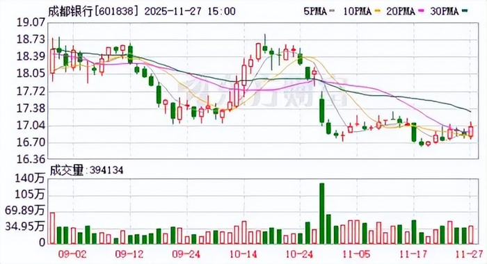 成都银行成立于1996年12月,2018年1月31日在上交所主板上市,成为四川省首家上市银行、国内第8家A股上市城商行。截至2025年11月27日收盘,该行总市值721亿元,在A股42家上市银行中排名第24,但在17家城商行中排名相对靠前。