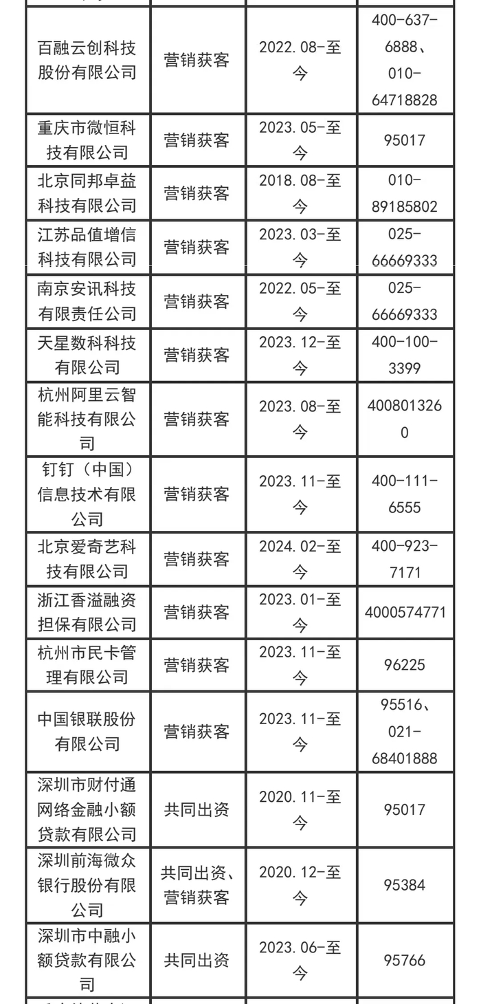 其中,共同出资合作机构9家,分别为:网商银行、众邦银行、蚂蚁消金、盛际小贷(京东旗下)、财付通小贷(腾讯旗下)、微众银行、中融小贷(字节跳动旗下)、度小满小贷、三快小贷(美团旗下)。