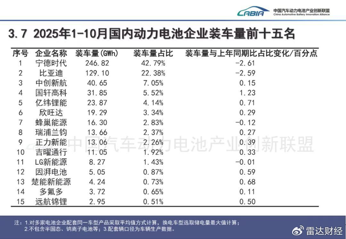 根据中国汽车动力电池产业创新联盟数据,今年1-10月,宁德时代动力电池装车量达246.82GWh,装车量占比为42.79%,较去年同期下降2.61个百分点。