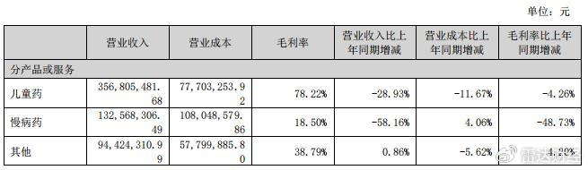 今年上半年,作为公司营收主力的儿童药,实现营收3.57亿元,较去年同期减少了28.93%;慢病药业务营收与去年同期相比,更是直接腰斩,仅为1.33亿元,降幅达58.16%。