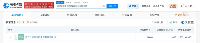 雷达财经讯,天眼查工商信息显示,近日,浙江长兴金太阳新能源科技有限公司成立,法定代表人为开明敏,注册资本1000万人民币,经营范围含工程和技术研究和试验发展、新材料技术研发、资源再生利用技术研发、电池制造、电池销售、蓄电池租赁、电动自行车销售、储能技术服务等。股东信息显示,该公司由超威电源集团旗下浙江长兴金太阳电源有限公司全资持股。