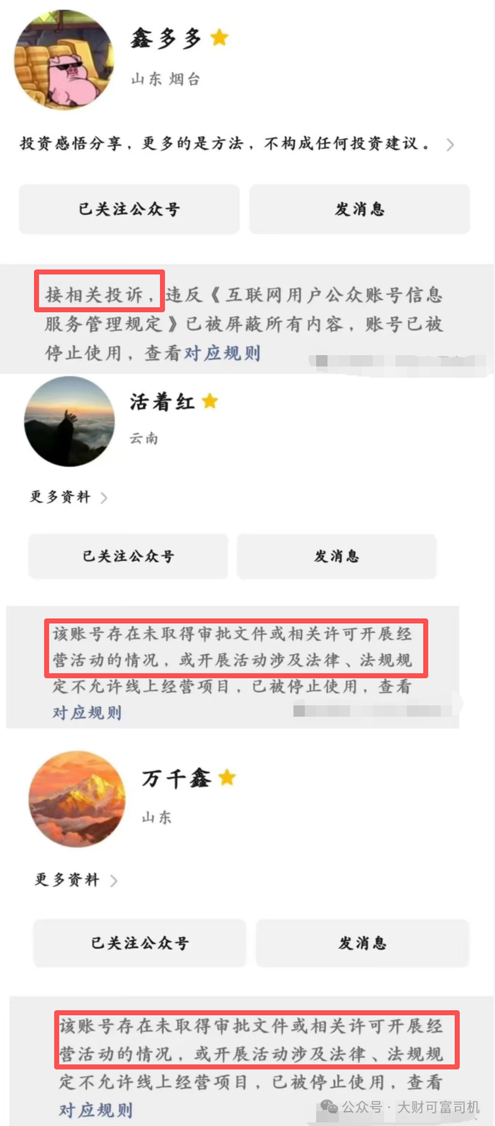 也正因为长期从事无资质荐股、编造股市小作文误导投资者,鑫多多的微信公众号被封了好几个,雪球上的“天道酬勤我午休”账号也早已被注销。
