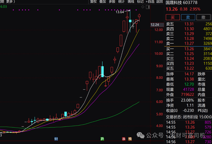 国晟科技这只股票上,随着吹票发酵,股价从4元一路飙升至逾13元,鑫多多持仓浮盈超2倍。这只股票会不会重走中毅达的老路,且让我们拭目以待!