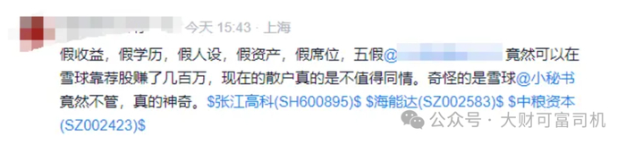 更有知情网友补充爆料,总结出鑫多多的“五假标签”:假收益、假学历、假人设、假资产、假席位,但却凭借荐股赚了几百万。