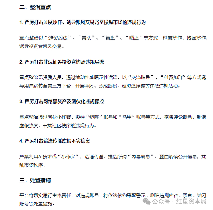 “重点整治以‘游资战法’‘带队’‘复盘’‘晒盘’等方式,过度炒作、炮团炒作、诱导投资者跟风交易。”雪球称。