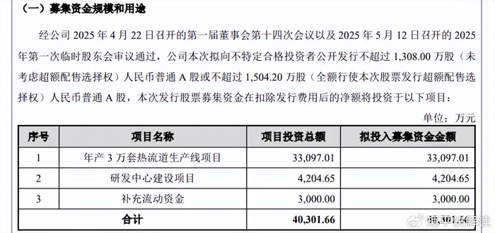 据短平快解读了解,本次IPO,恒道科技拟向不特定合格投资者公开发行不超过1,308.00万股(未考虑超额配售选择权),拟募集资金4.03亿元,用于年产3万套热流道生产线项目(生产项目)、研发中心建设项目以及补充流动资金,拟投入募集资金分别为3.31亿元、0.42亿元、0.3亿元。