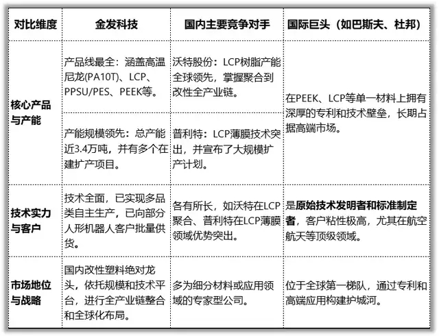金发科技在该领域的优势在于技术、规模与应用端的综合布局。它与国内外主要竞争对手的对比情况如下表所示: