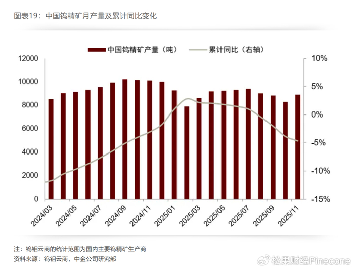 尽管长期视角下钨矿开采总量在上涨,但短暂的这几年,它不会出现太大放松。