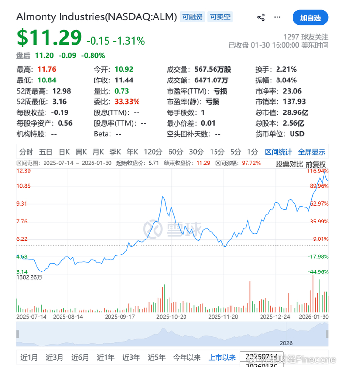 纳斯达克曾在去年夏天迎来一支特殊的新股Almonty Industries(加拿大阿尔蒙蒂工业公司),至今其股价涨幅也接近翻倍,它正是西方钨产业的代言人、世界最大钨矿商之一。其钨矿资产主要分布在韩国、葡萄牙、美国及西班牙,而商业路线则类似Palantir和Anthropic,寄希望于美国军工等方面的国家订单。