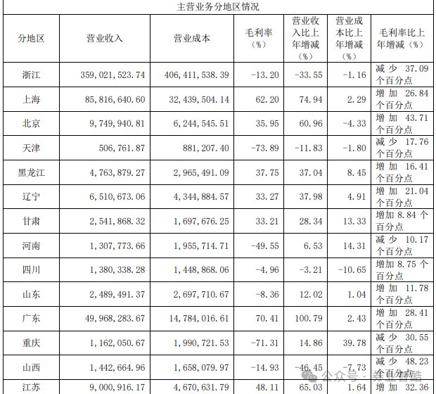 南华期货2024年报分部数据显示,广东地区营业收入位居前列,并且同比翻了一番还多;毛利率超过70%,也是各区域之最。