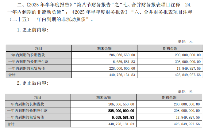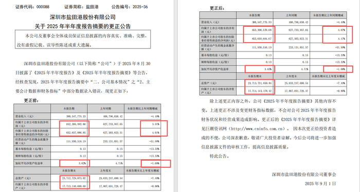 更正内容仍集中在财务报表数据以及股东信息的披露上。如盐田港公告显示,经核查发现,2025年半年度报告摘要中“二、公司基本情况”之“2、主要会计数据和财务指标”中部分数据录入错误。