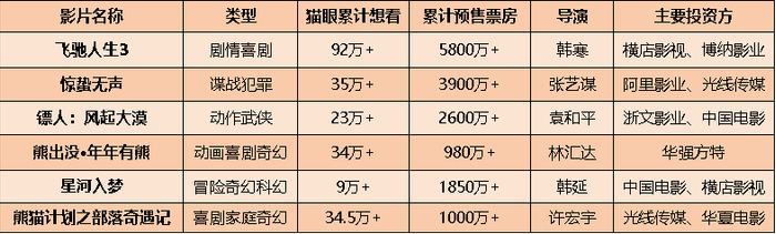 此外,今年春节档还有另外2部影片加入战局。这两部电影分别是大年初三重映的影片《重返·狼群》以及大年初四率先在两广地区上映的港片《夜王》。