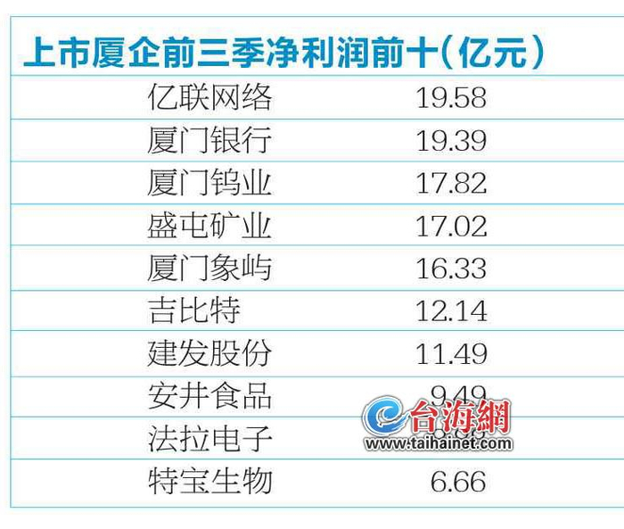 68家上市厦企44家净利润增长