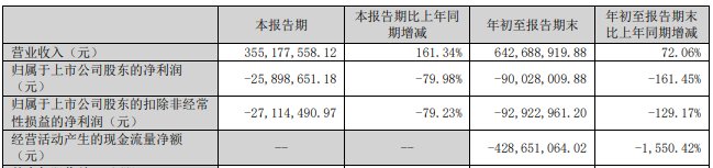 中国经济网北京11月11日讯 奥尼电子(301189.SZ)2025年第三季度报告显示,公司前三季度实现营业收入6.43亿元,同比增长72.06%;归属于上市公司股东的净利润-9,002.80万元,同比增亏,上年同期为-3,443.41万元;归属于上市公司股东的扣除非经常性损益的净利润-9292.30万元,同比增亏,上年同期为-4,054.71万元;经营活动产生的现金流量净额为-4.29亿元,上年同期为-2,597.2万元。