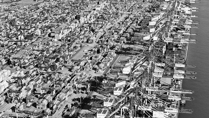 12月8日拍摄的青岛港前湾港区(无人机照片)。